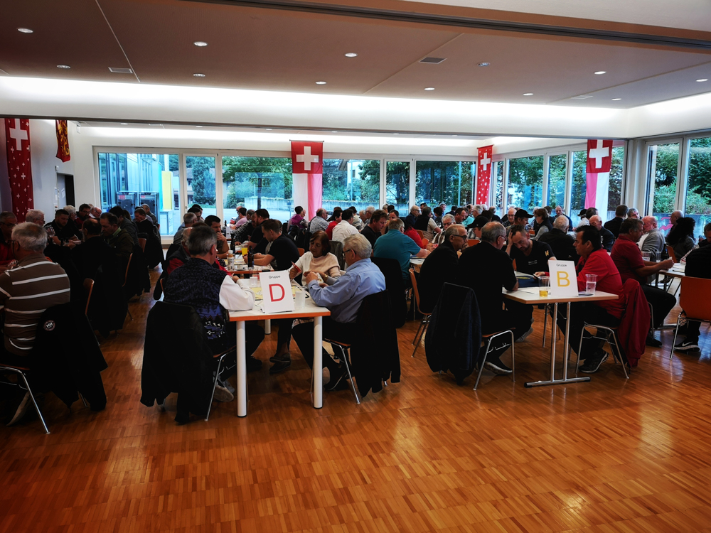In einem spannenden Jass konnten sich am Schluss Toni Eberhard und Ernst Dober (Veteranen Merlischachen) mit einem Total von 5603 Punkten den ersten Platz erspielen. Den zweiten Platz sicherten sich Martin und Sepp Odermatt (Buochs-Ennetbürgen) mit 5522 Punkten vor den drittklassierten Franz Bachmann und Albert Keiser (BFW RUAG) mit 5404 Punkten.
